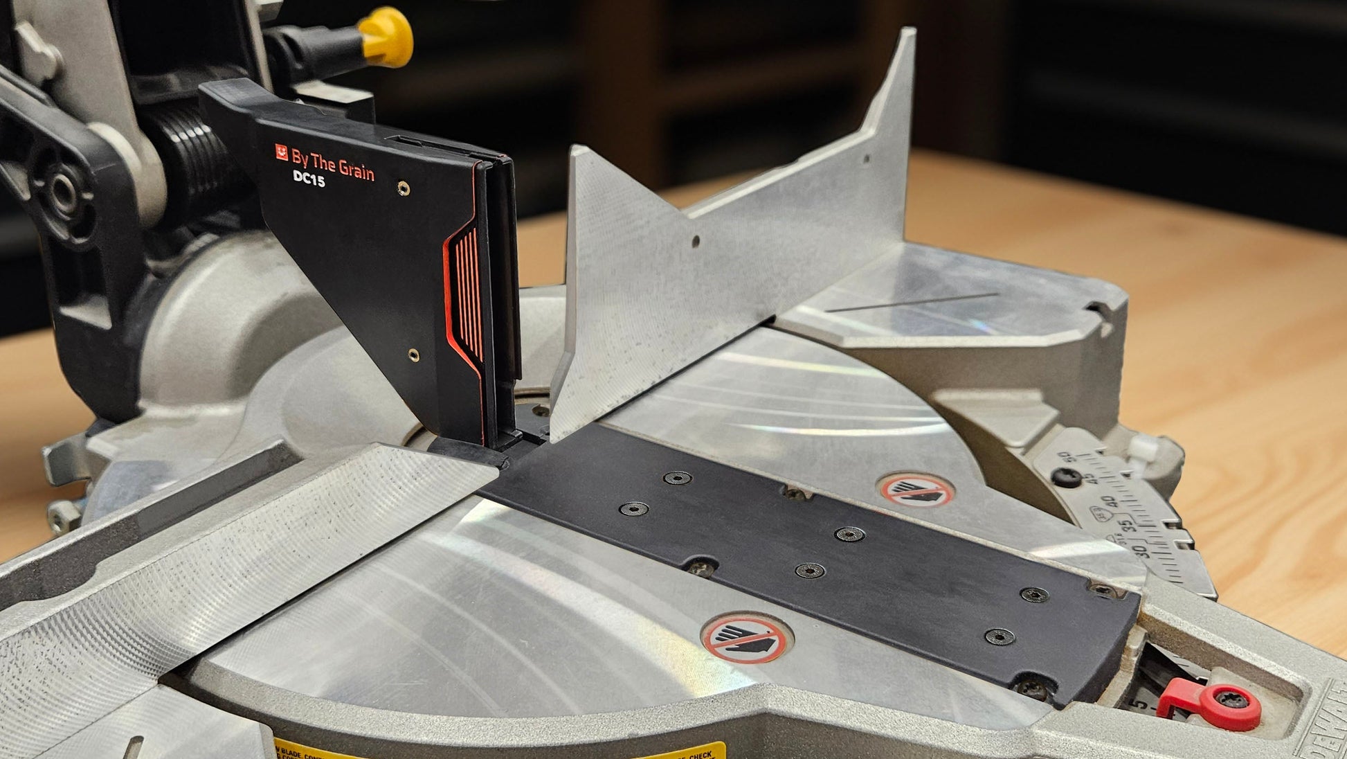 Upgrade your DeWalt DWS715 with the DC15 Dust Collection System. A precision engineered design to dramatically improve dust collection and keep your workspace clean. It can be used with a standard Dewalt dust bag or shop vacuum. Comes with mounting screws and can be installed using your original DeWalt throat plate screws.