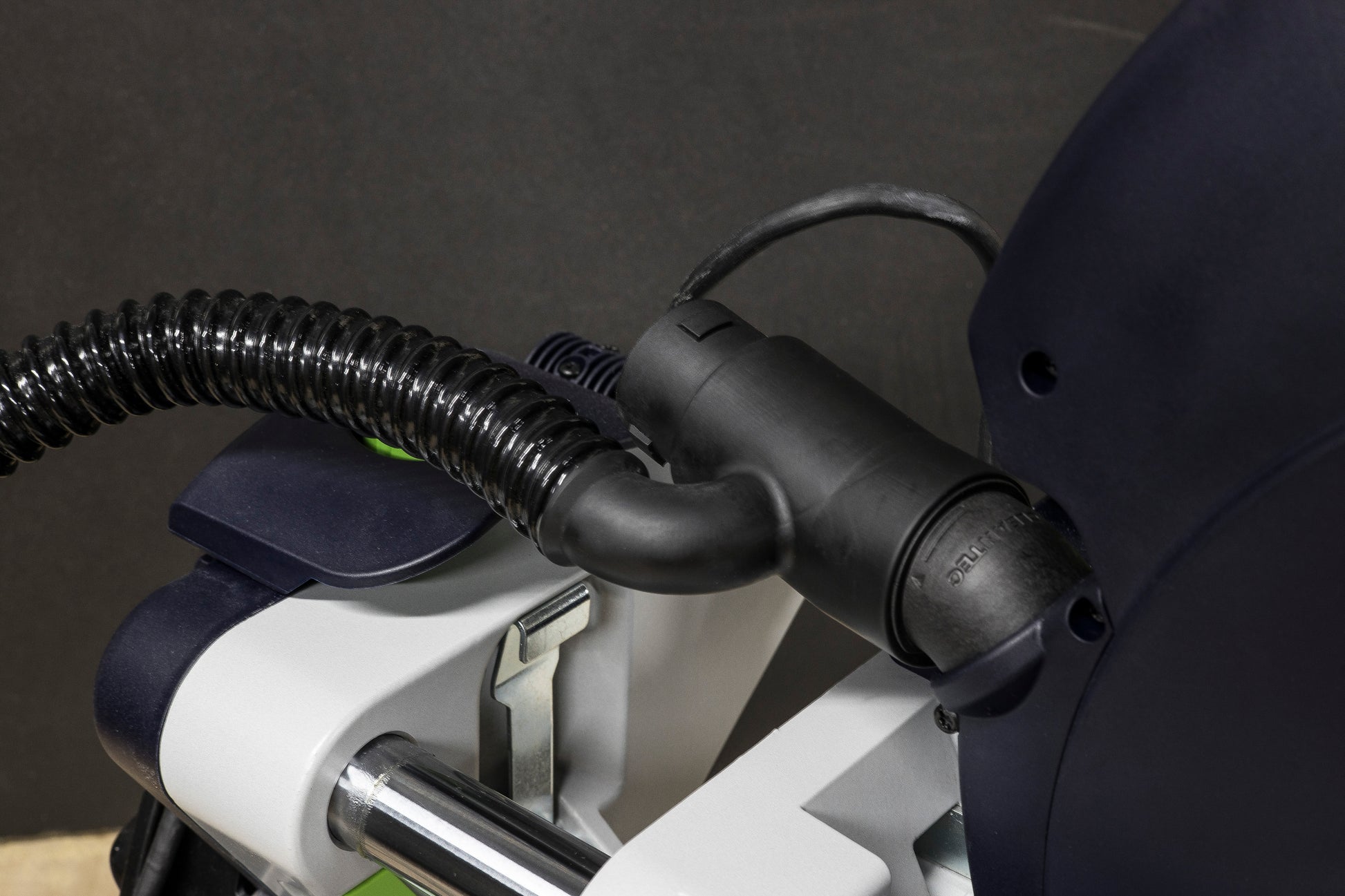 • Dust Recirculation Adapter - A plug-in dust port adapter that allows a recirculating hose to connect directly to the miter saw's existing dust extraction port.