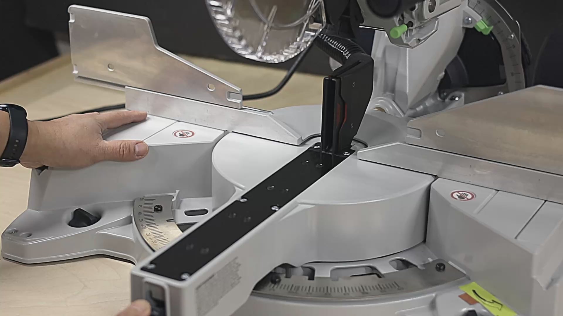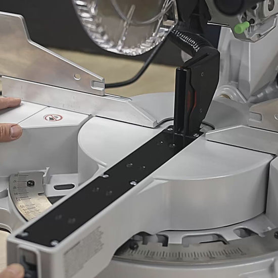 • Adjustable Shroud – Moves with your miters to help seal gaps and direct dust into the channel.